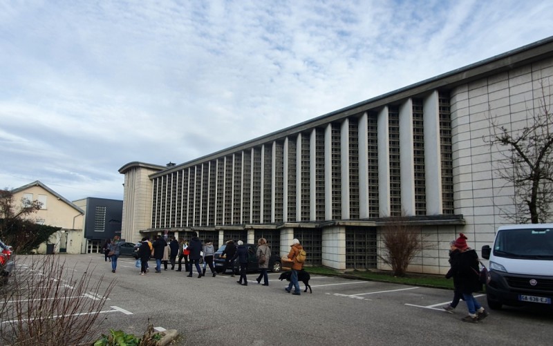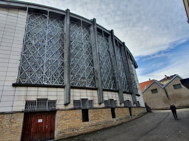 Dalles de verre et ciment, 1958 à 1959, 90 baies, 668 m² , Jean Crouzillard architecte, édifice inscrit aux monuments historiques en 2011
