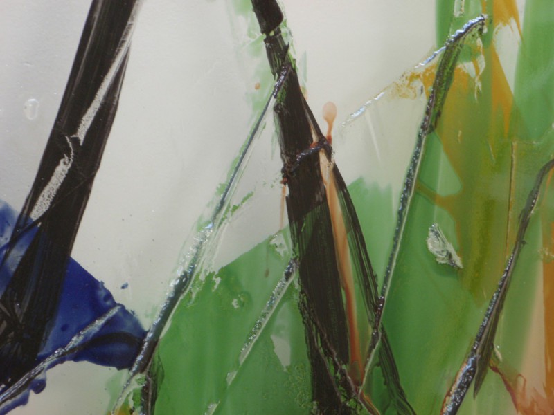 Technical : 8mm clear glass thermoformed and painted with grisaille, enamels and cements, tempered glass