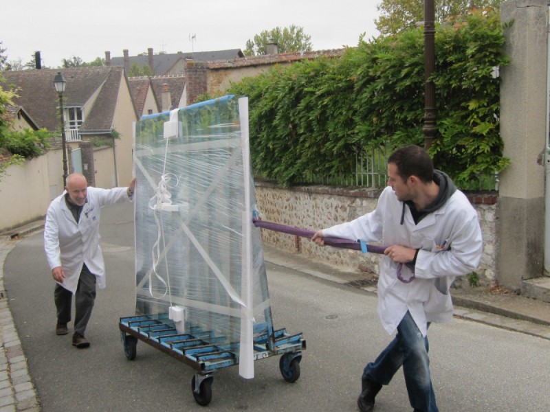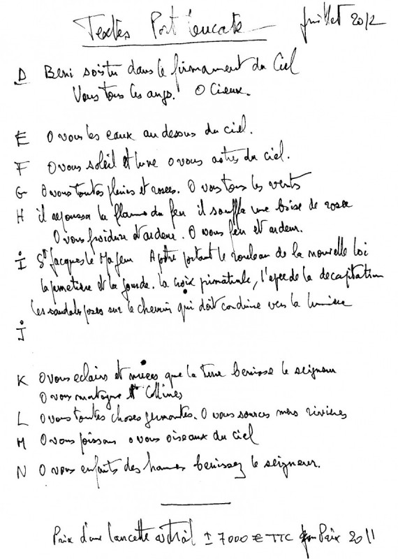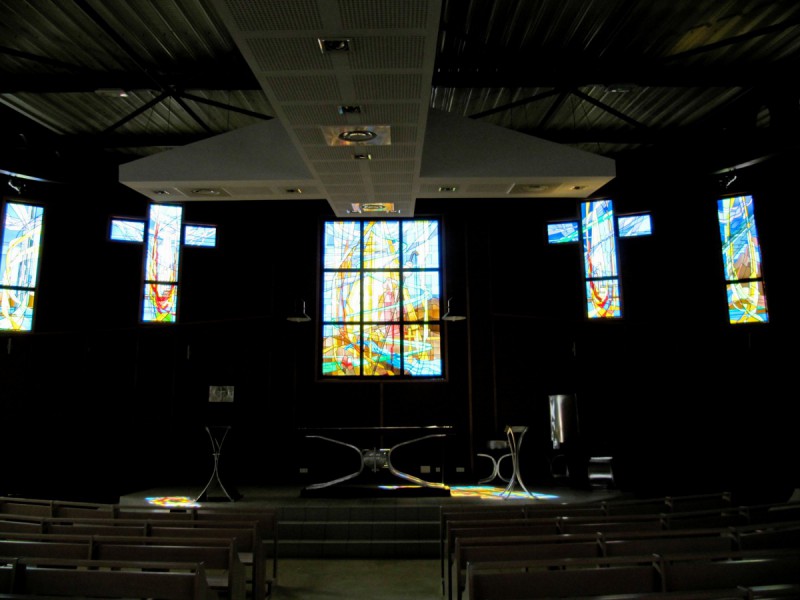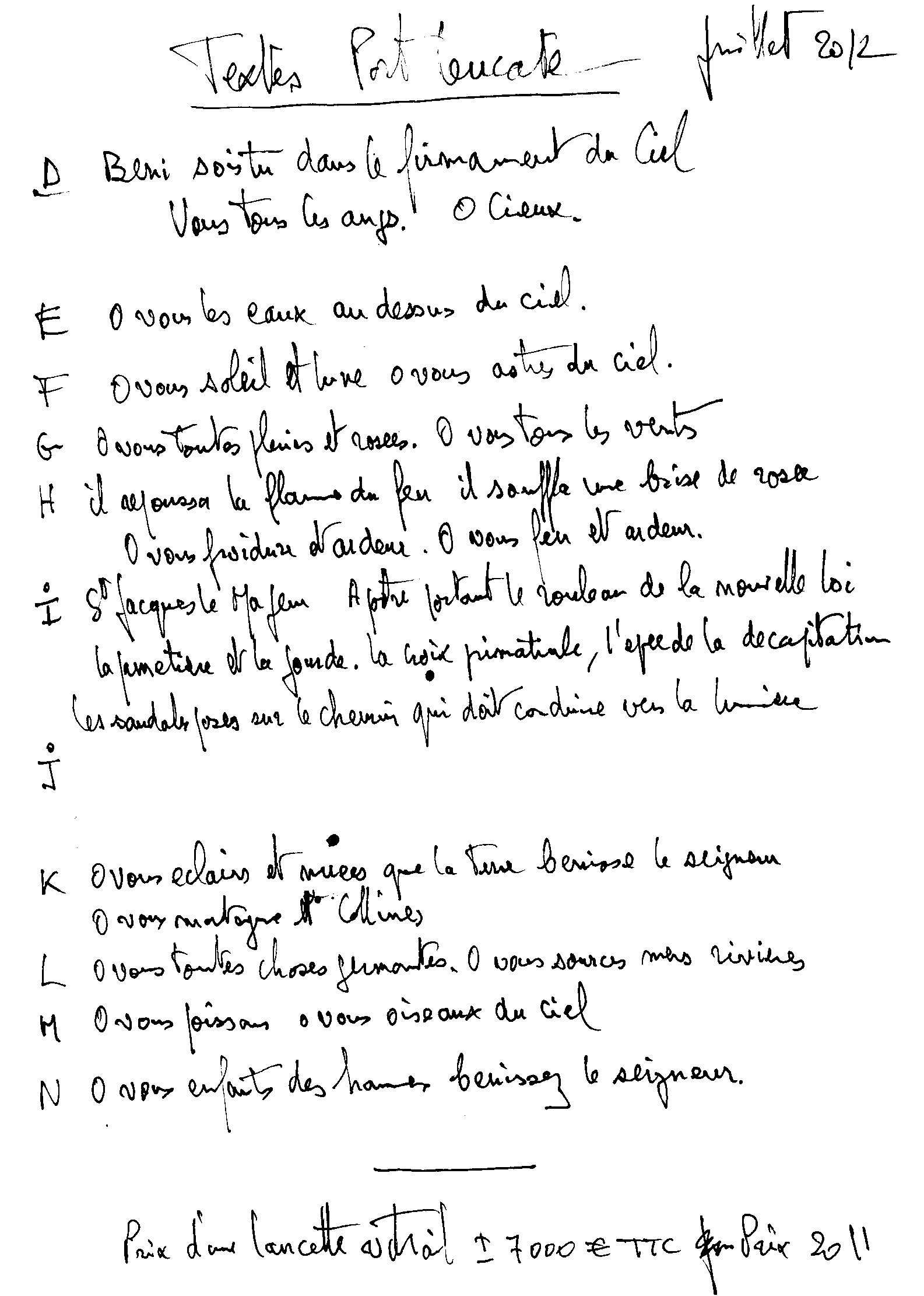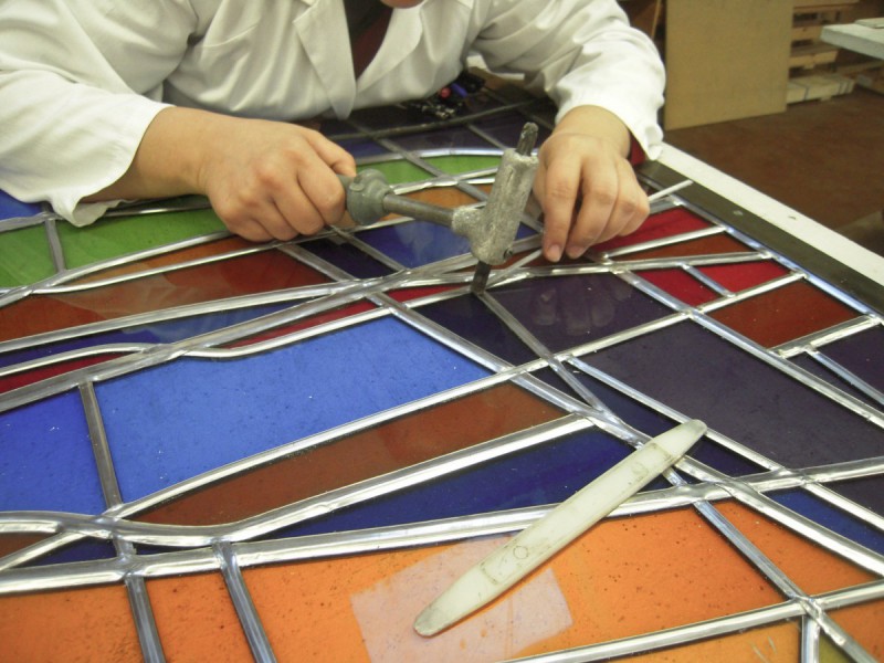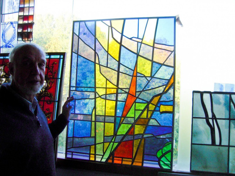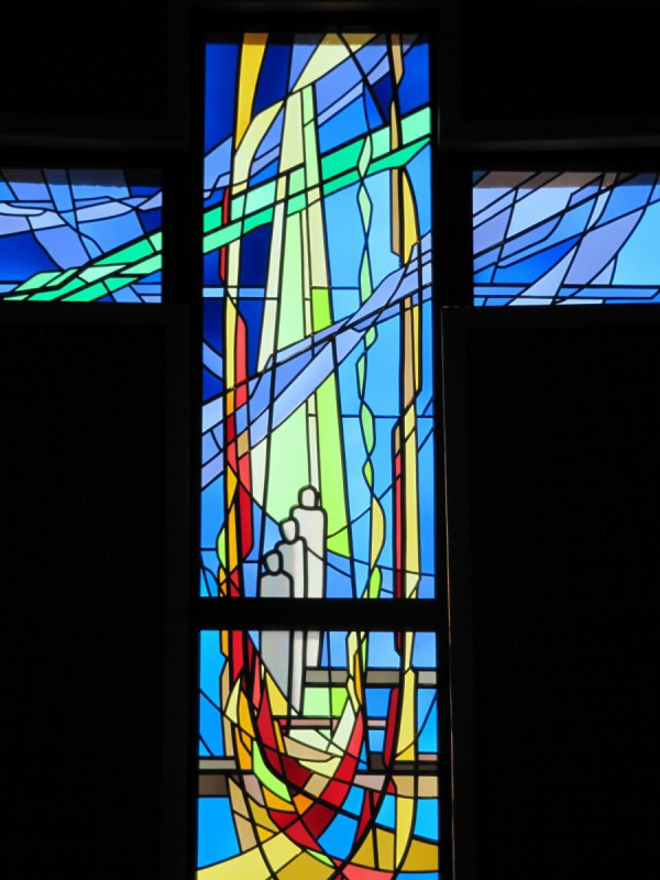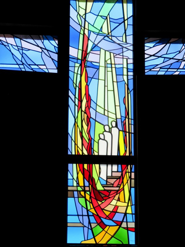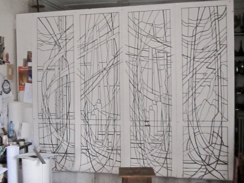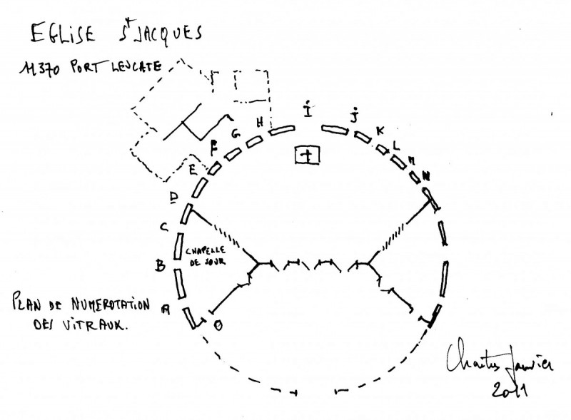 Antique glass settled by lead and inserted in double glazing 4 4 2, 2011 to 2012, 11 windows ((D,E,F,G,H,J,K,L,M,N : Daniel's canticle, I : Saint James the major), 29,20 m², Jérôme Py architect