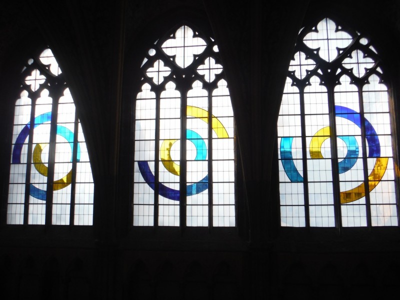 Verres antiques sertis de plomb, 2015 à 2016, 4 baies pour les transept Nord et Sud, 80 m²