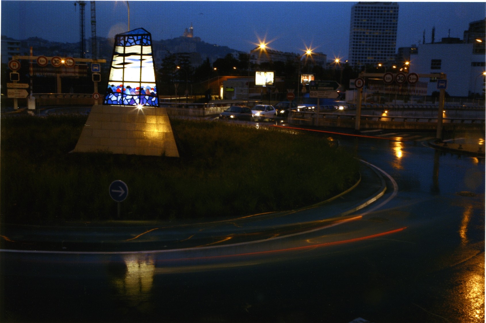 Les techniques du vitrail peuvent être utilisées pour la création d'oeuvres en extérieur.