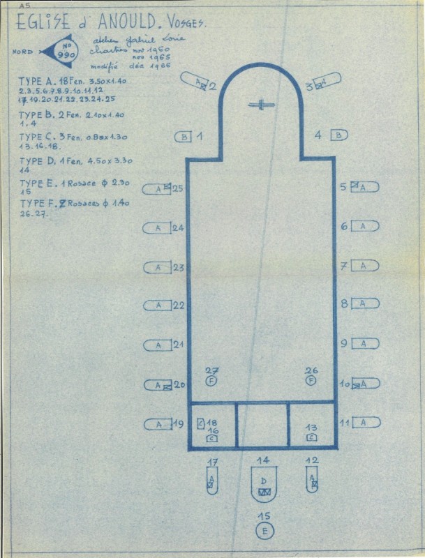 Dalles de verre et ciment, 1967, 27 baies, 108 m², François-Boleslas de Jankowski architecte (Saint Dié et Paris)